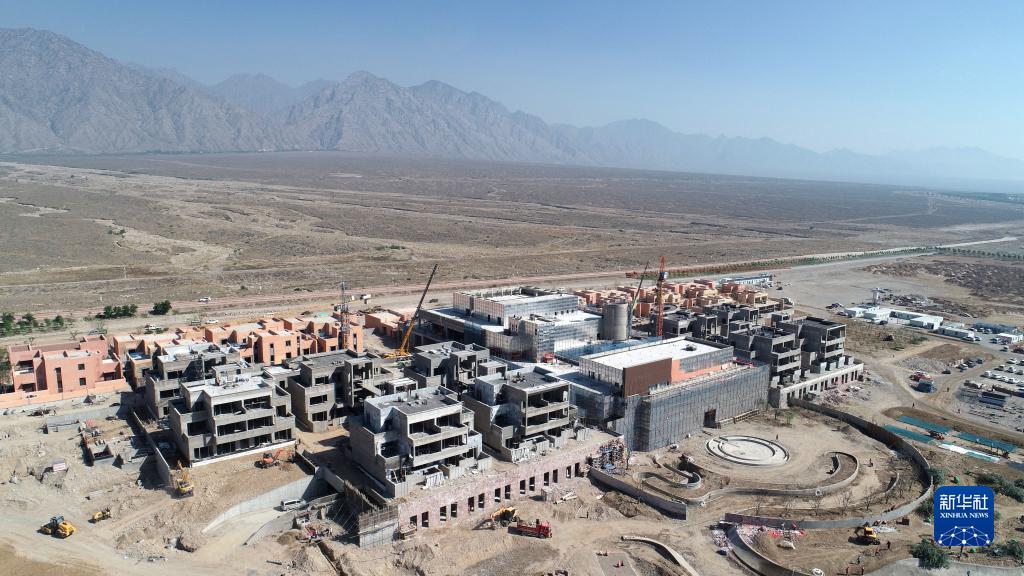 這是正在建設中的位于寧夏銀川市賀蘭縣的圖蘭朵葡萄酒小鎮(6月8日攝,無人機照片)。