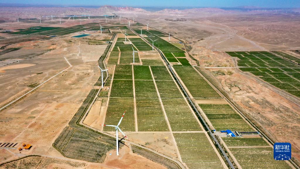 這是位于寧夏青銅峽市的西鴿酒莊釀酒葡萄種植基地(6月7日攝,無(wú)人機(jī)照片)。