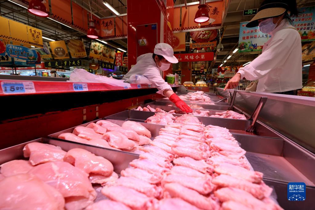 6月9日,消費者在山東省棗莊市一家超市選購肉類產品。