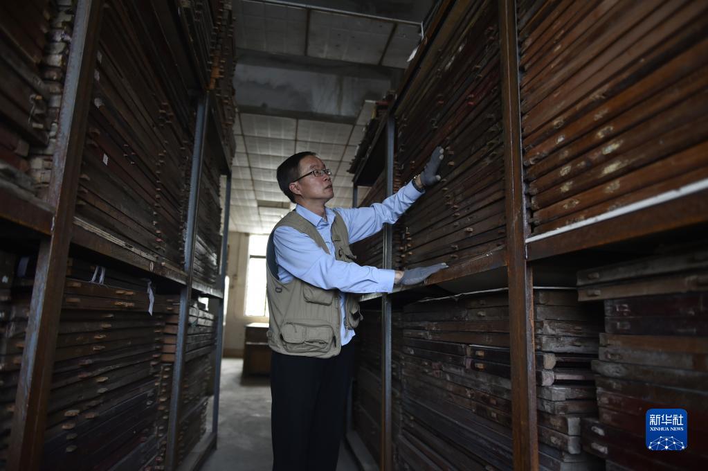 6月7日,張俊濤在庫房內整理自己收集的家用傳統木雕。