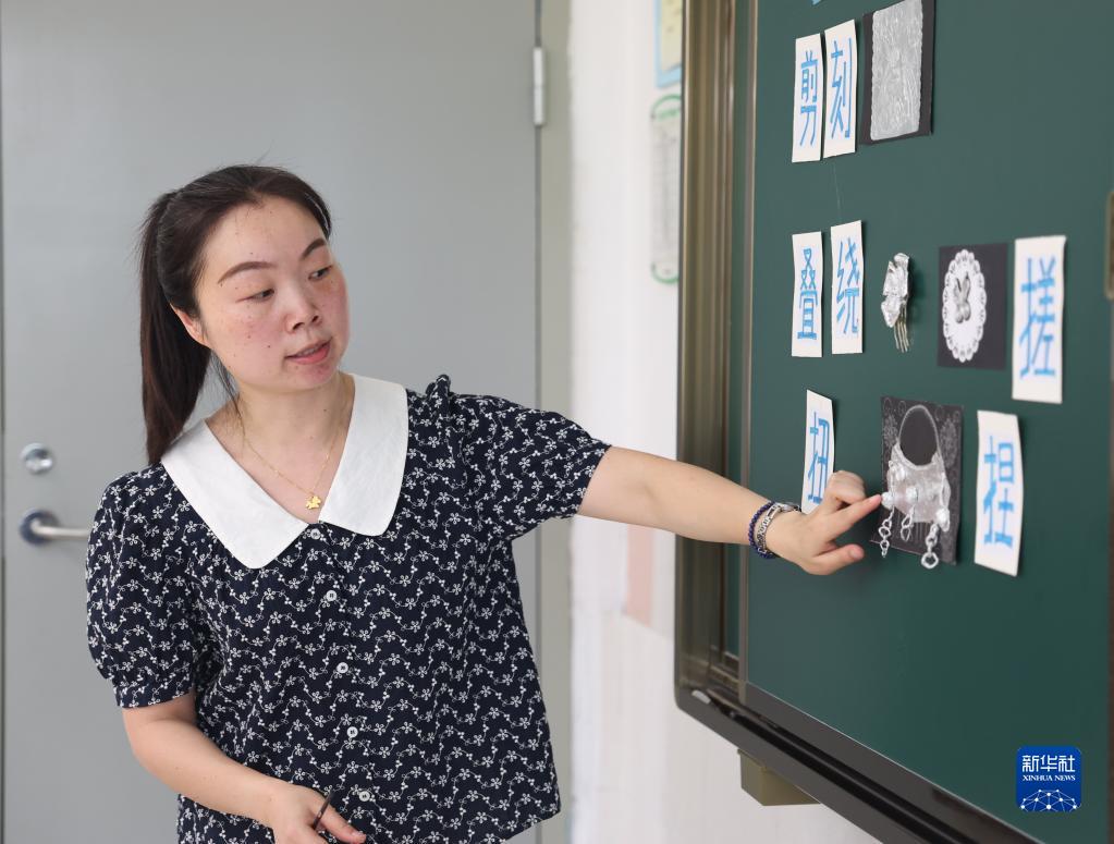 6月9日,湖南省長沙市朝陽小學(xué)王曉風(fēng)老師在特色美育課上向?qū)W生們介紹制作技藝。