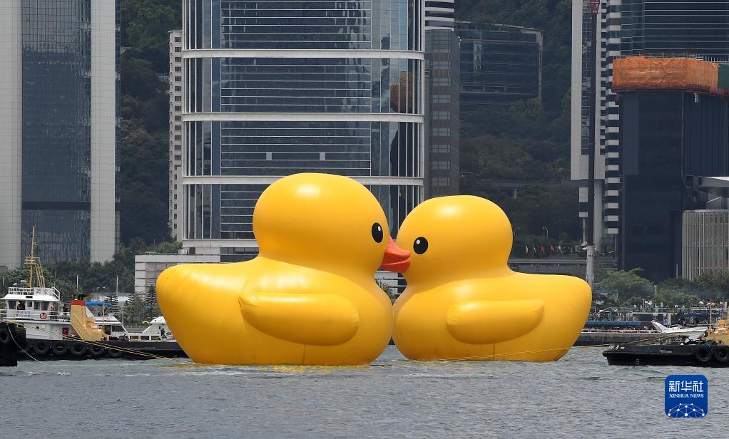 當日,兩只高約18米的“大黃鴨”亮相香港維多利亞港。這是闊別10年后,“大黃鴨”再度到港。據悉,兩只“大黃鴨”將于6月10日面向公眾開放,展期約兩周。
