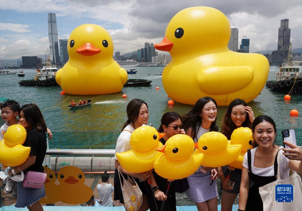 當日,兩只高約18米的“大黃鴨”亮相香港維多利亞港。這是闊別10年后,“大黃鴨”再度到港。據悉,兩只“大黃鴨”將于6月10日面向公眾開放,展期約兩周。