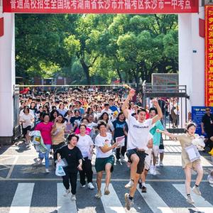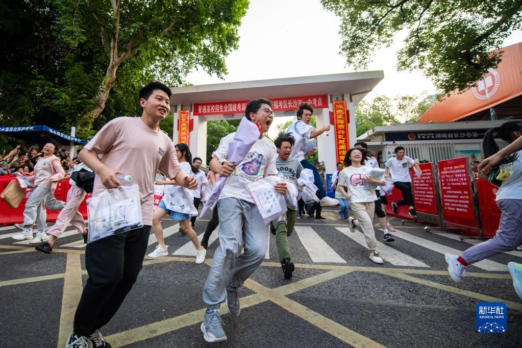6月9日,在長沙市第一中學考點,考生在高考結束后慶祝。