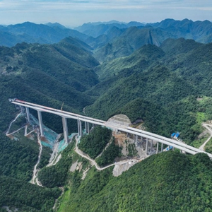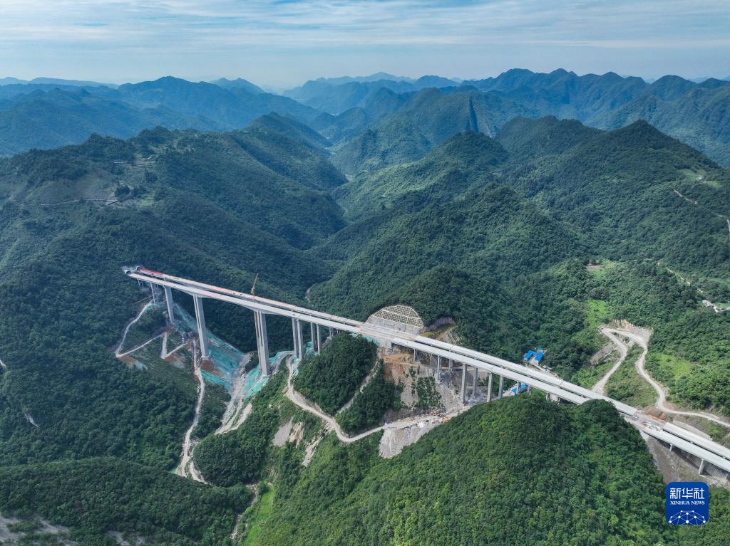 6月9日,由中鐵一局承建的貴州省遵義市桐梓縣至新蒲新區高速公路重點控制性工程芭蕉灣特大橋架設完成,大橋左右幅全部貫通。芭蕉灣特大橋位于貴州省綏陽縣枧壩鎮,全長569米,最大墩高135米。