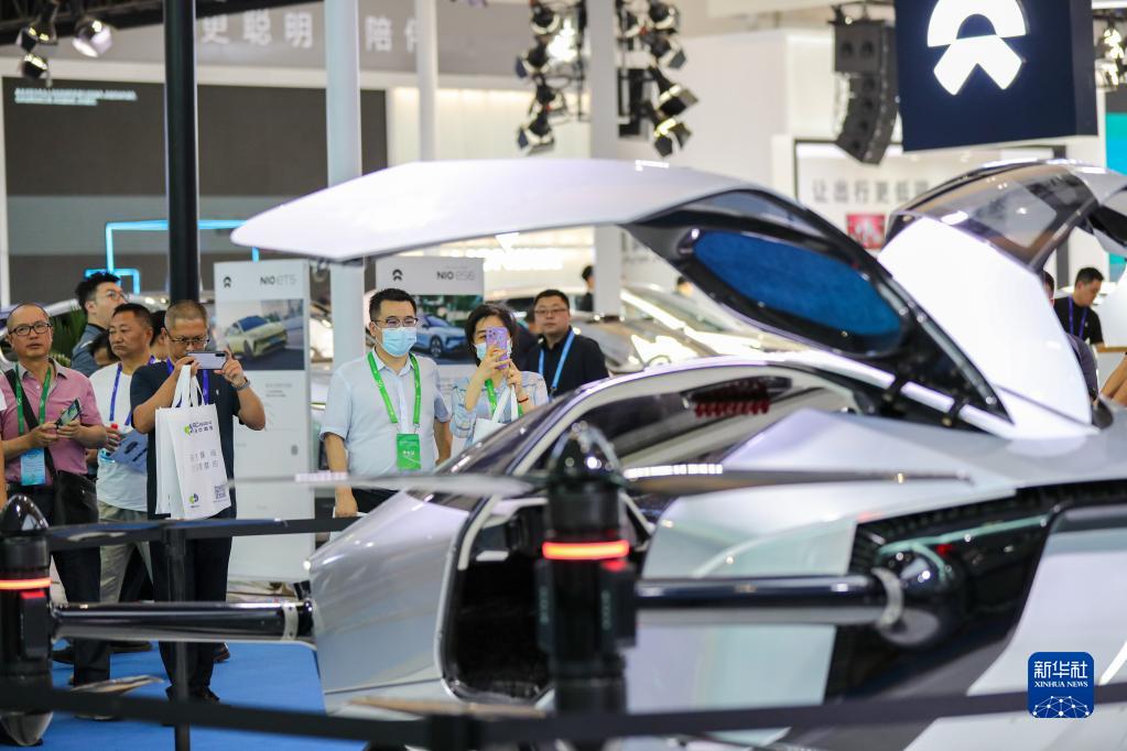 6月9日,參觀者在展覽會(huì)上了解國產(chǎn)飛行汽車。
