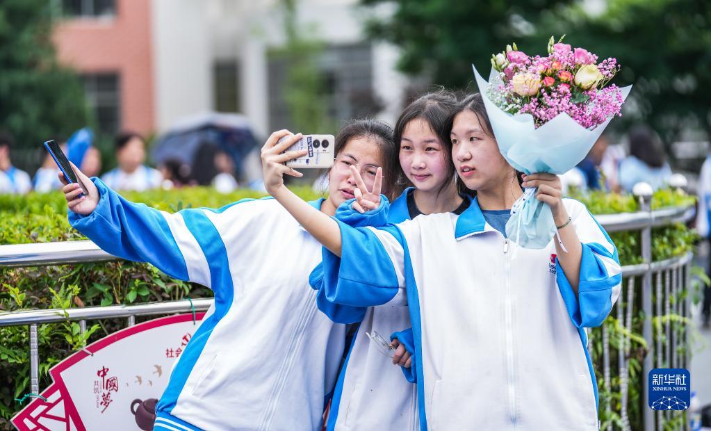 6月9日,烏當(dāng)中學(xué)高三學(xué)生在校園廣場自拍留念。