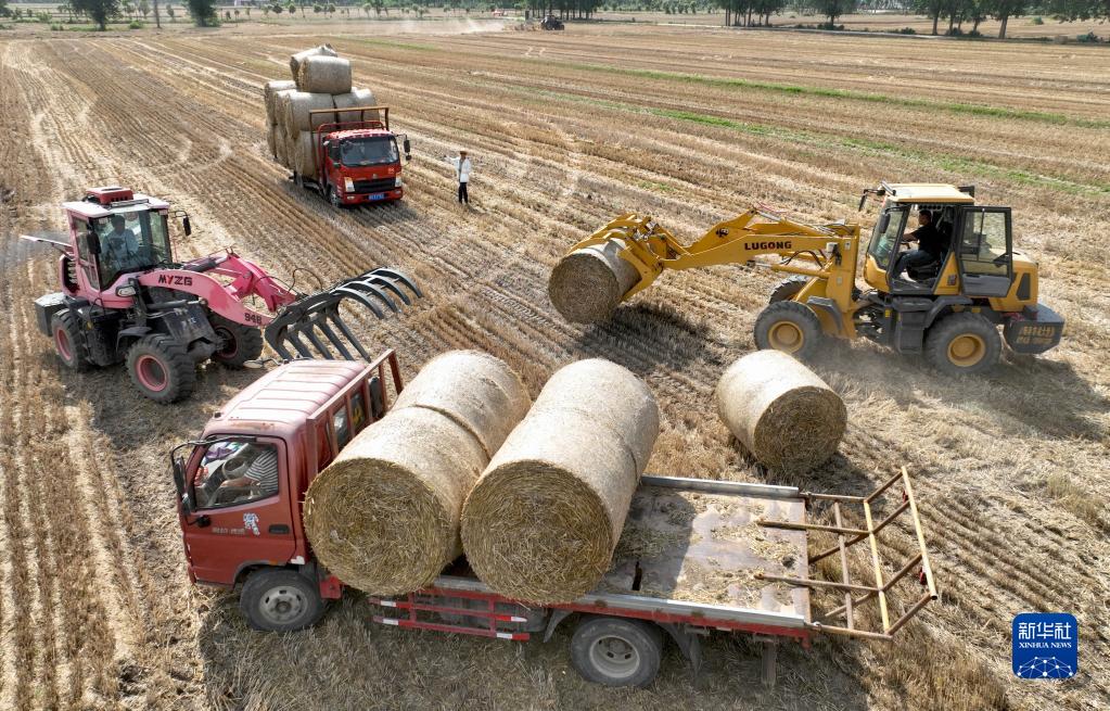 三夏時節,小麥豐收,各地農民及時將秸稈打捆回收。