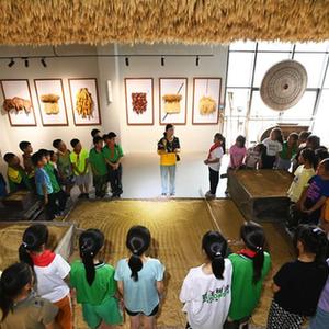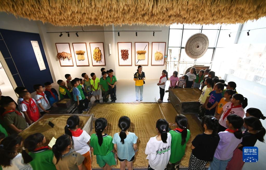 6月9日,學生在貴州省綏陽縣中小學勞動教育綜合實踐基地農耕文化教育館聽老師介紹農作物。