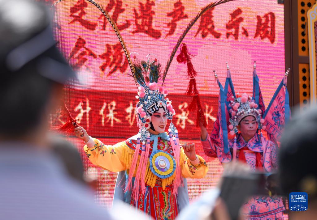 6月9日,在烏魯木齊大巴扎景區(qū),烏魯木齊市文化館群星京劇團(tuán)的演員表演京劇《國粹芬芳》。