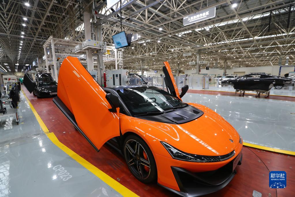 這是6月9日在位于廣州番禺的廣汽埃安智能生態工廠內拍攝的高端智能電動超跑Hyper SSR生產線。