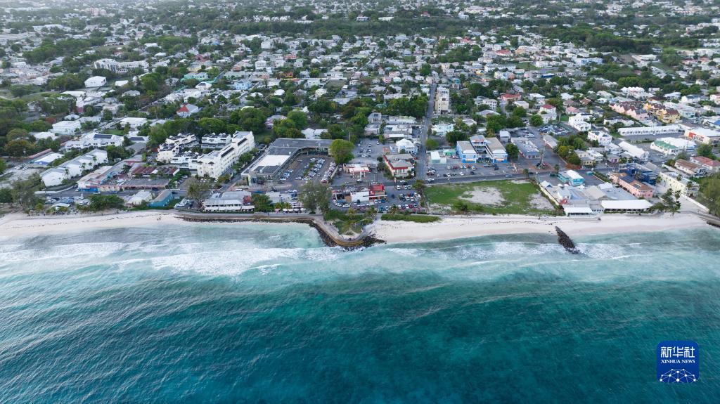 這是5月29日拍攝的巴巴多斯首都布里奇敦的海岸線風(fēng)光(無人機照片)。
