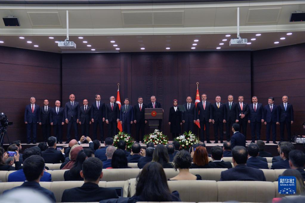 6月3日,土耳其總統(tǒng)埃爾多安在首都安卡拉宣布新一屆內(nèi)閣成員名單。