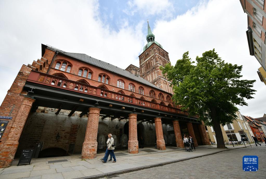 6月1日,人們在德國施特拉爾松德街頭行走。