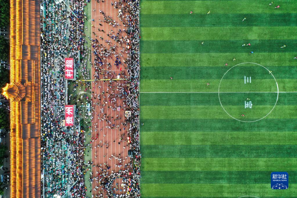 6月10日拍攝的貴州“村超”足球比賽現場(無人機照片)。