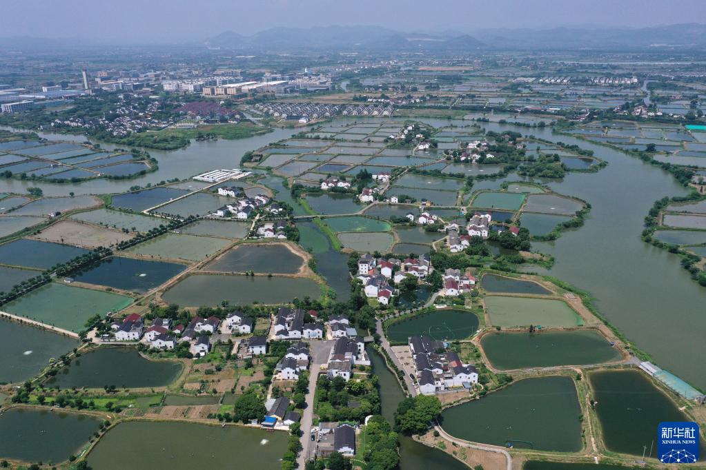6月9日拍攝的浙江湖州市南潯區(qū)和孚鎮(zhèn)新荻村(無人機(jī)照片)。近年來,新荻村大力發(fā)展水文化、漁文化、菱文化,結(jié)合自身特色發(fā)展休閑鄉(xiāng)村旅游,打造美麗鄉(xiāng)村升級版。