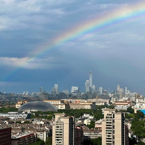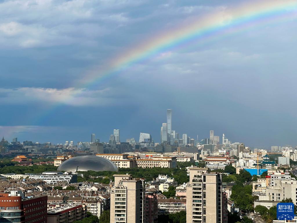 當日,一場降雨過后,北京上空出現彩虹。