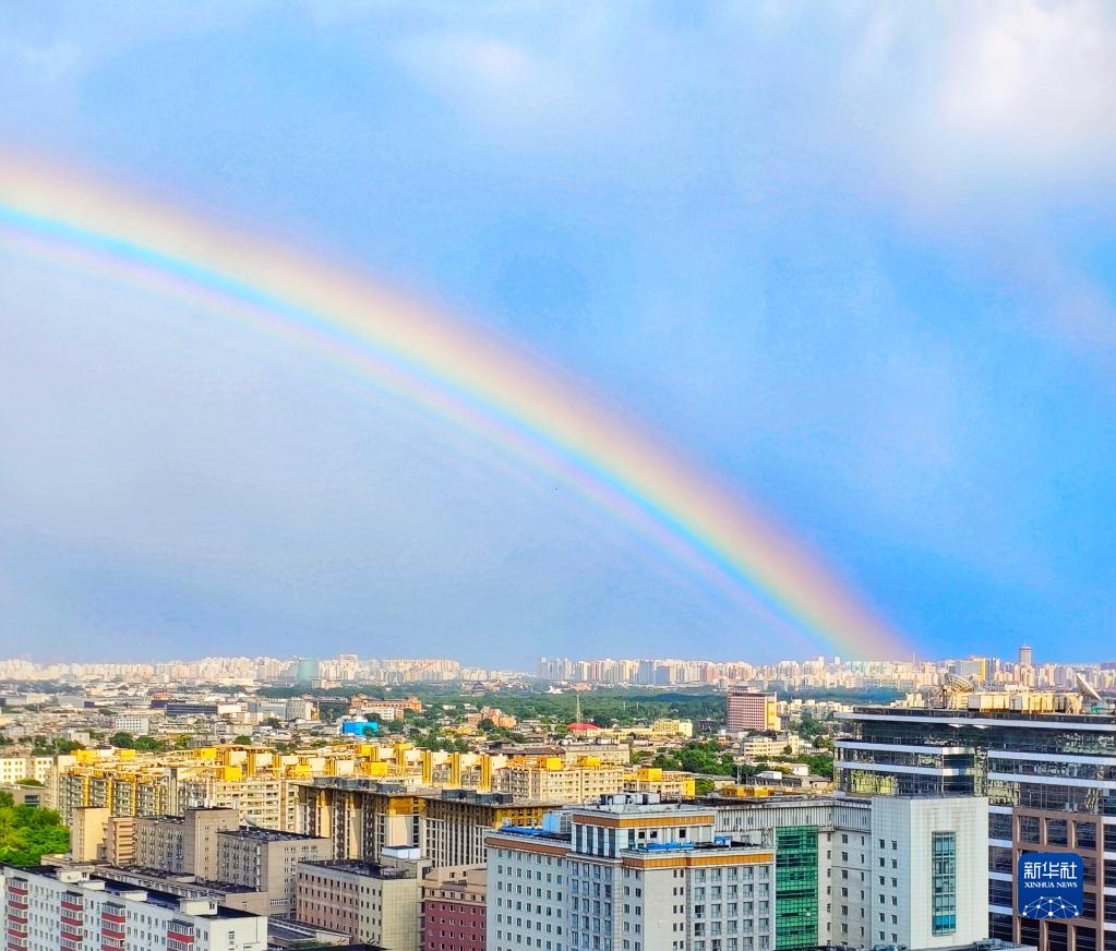 這是6月11日在北京宣武門附近拍攝的彩虹(手機照片)。