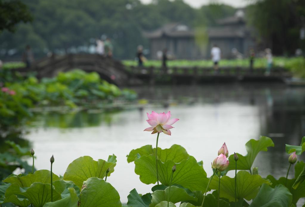 近日,浙江杭州西湖荷花進入盛花期,西湖水域24塊荷區約150畝荷花漸次開放。