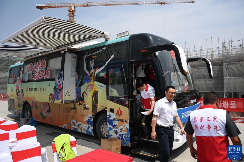 當日,在第20個“世界獻血者日”來臨前,浙江省血液中心的一輛獻血車來到中建三局浙江公司杭州錢塘18號廠房項目工地,30余名工程技術崗位的青年志愿者在通過化驗檢查后,登車完成無償獻血,奉獻愛心。