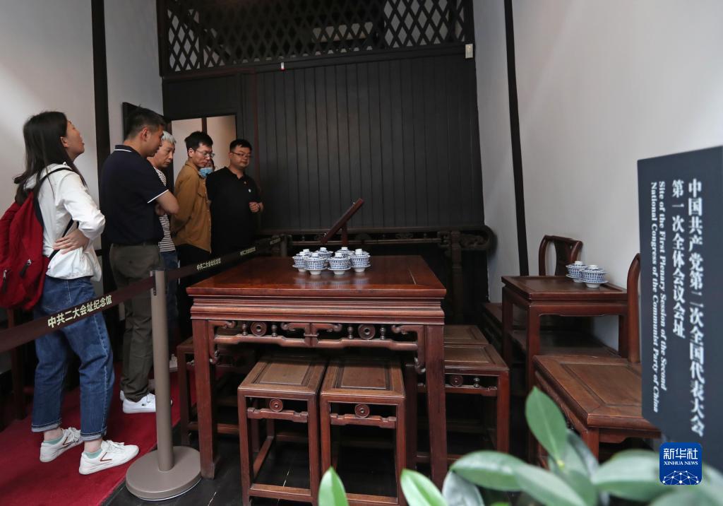6月7日,人們?cè)谥泄捕髸?huì)址紀(jì)念館內(nèi)參觀。
