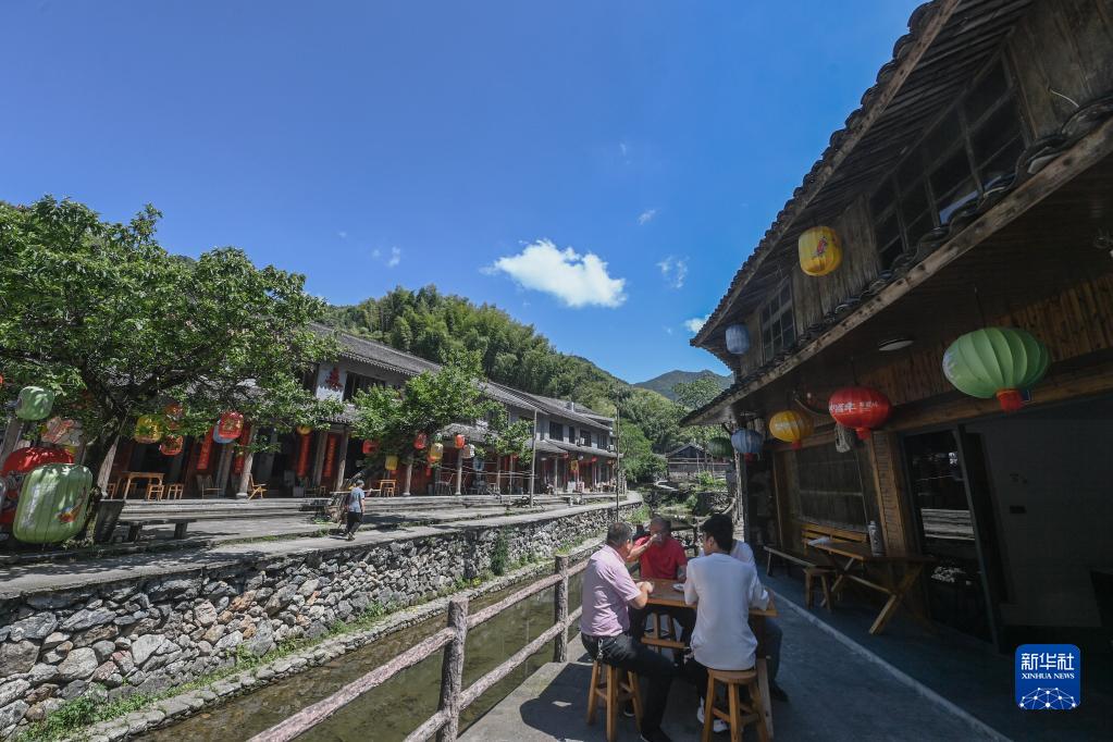 人們?cè)谡憬_(tái)州黃巖區(qū)嶼頭鄉(xiāng)布袋坑村的溪水旁喝茶(5月30日攝)。近年來(lái),嶼頭鄉(xiāng)堅(jiān)持黨建引領(lǐng),以全域旅游和美麗鄉(xiāng)村建設(shè)為重要抓手,引進(jìn)文化創(chuàng)意團(tuán)隊(duì),為鄉(xiāng)村旅游注入更加年輕化的元素,推進(jìn)特色民宿以及布袋山饅頭、溪坑魚等農(nóng)特產(chǎn)品的發(fā)展,帶動(dòng)鄉(xiāng)村振興和百姓共富。