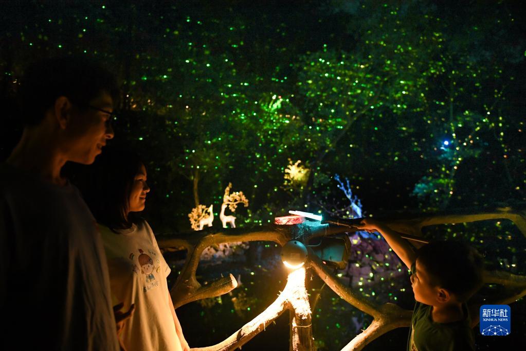 在浙江紹興新昌縣鏡嶺鎮(zhèn),游客在體驗山區(qū)夜游項目(5月4日攝)。