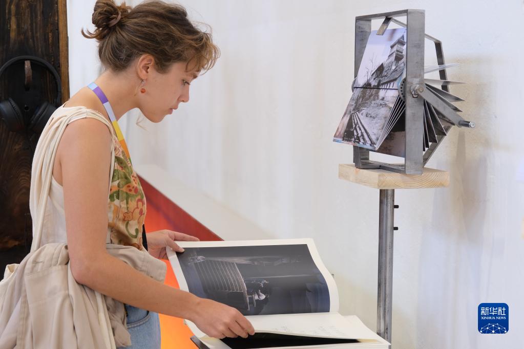 6月11日,在捷克布拉格舉行的布拉格演出設計與空間四年展上,一名女子參觀中國國家展展區。