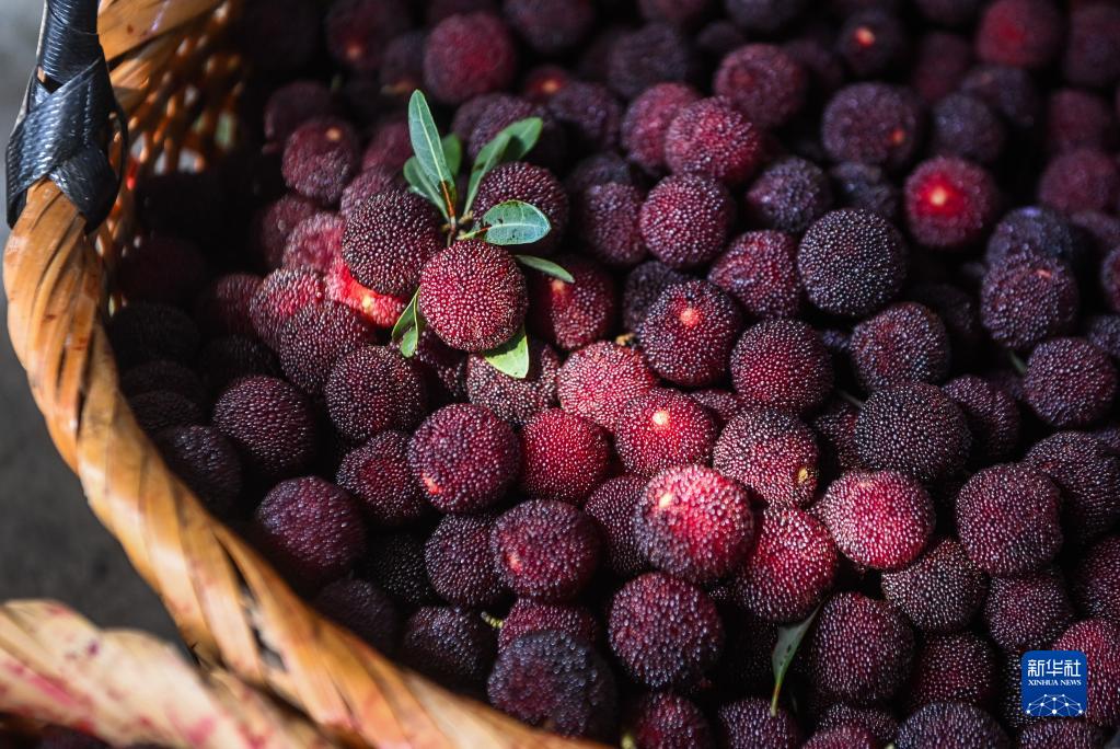 6月12日在慈溪市橫河鎮(zhèn)梅園村的楊梅園拍攝的剛剛采摘下來的楊梅。