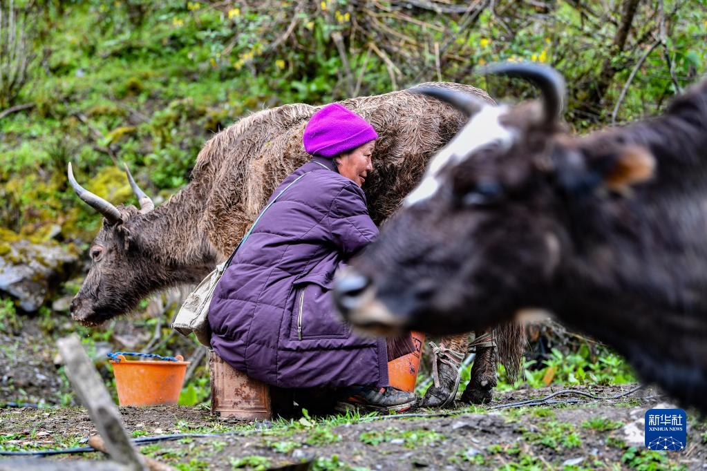 央宗在牧場擠奶(6月10日攝)。