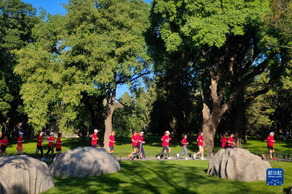 6月3日,跑步愛好者在北京天壇公園內晨跑(手機照片)。新華社記者 鞠煥宗 攝