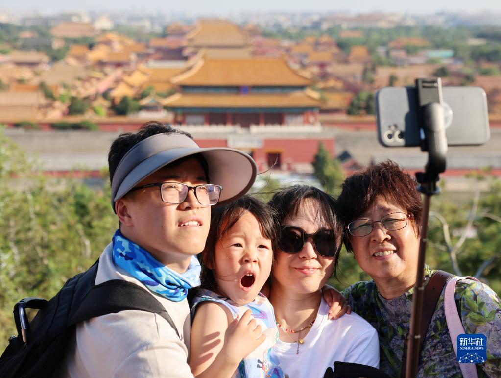 6月6日,人們在北京景山公園合影。新華社記者 張晨霖 攝