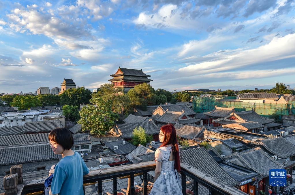 6月10日,人們在北京什剎海附近咖啡廳露臺欣賞風景。新華社記者 陳鐘昊 攝