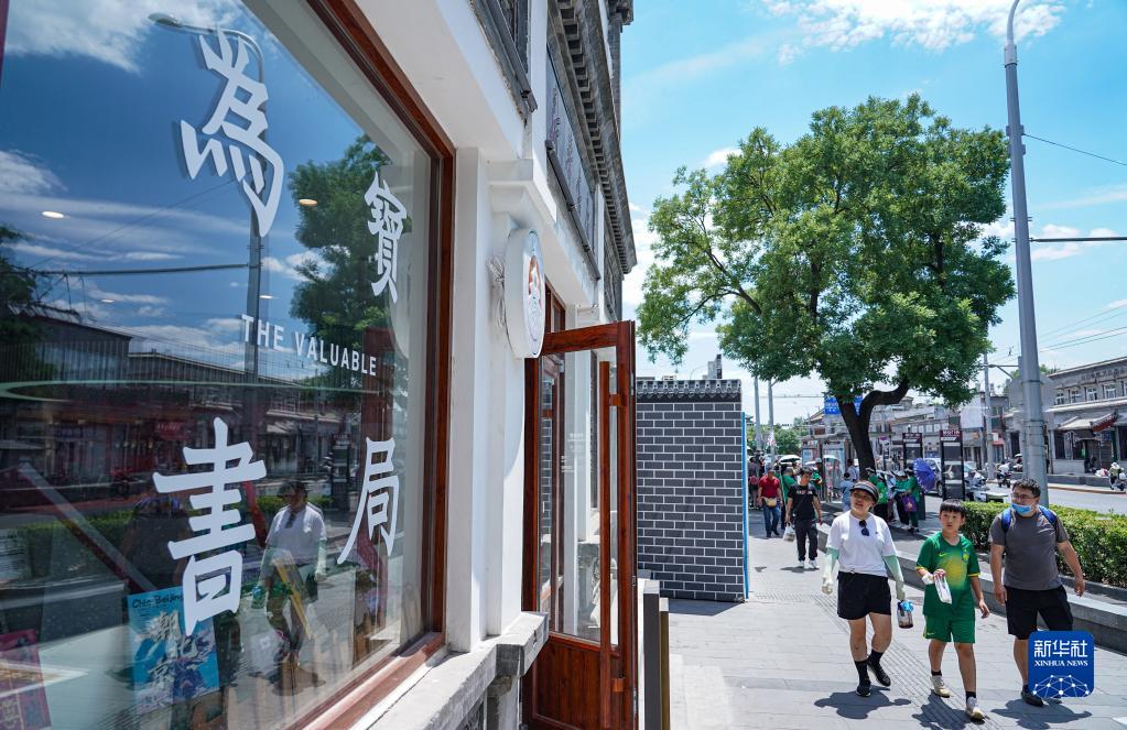 6月11日,位于北京地安門外大街一處文物建筑內(nèi),以北京中軸線為主題的書店吸引路人的目光。新華社記者 陳鐘昊 攝