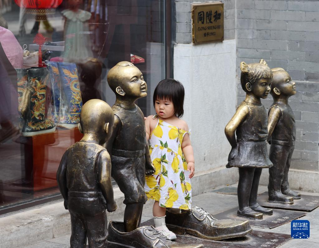 6月11日,小朋友在北京前門大街游玩。新華社記者 張晨霖 攝