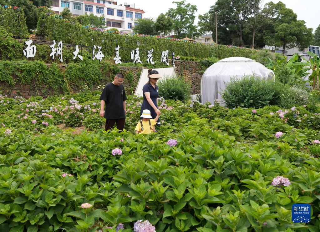 6月13日,人們在強蛟鎮一處花海景觀游覽。