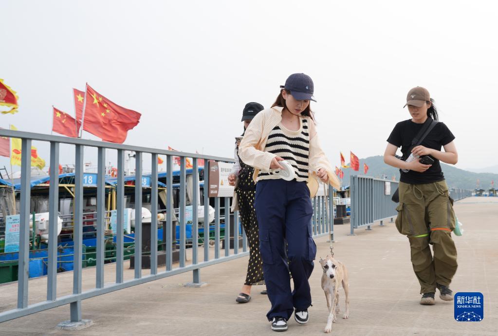 6月12日,幾名出海觀光的游客在強(qiáng)蛟鎮(zhèn)碼頭上岸。