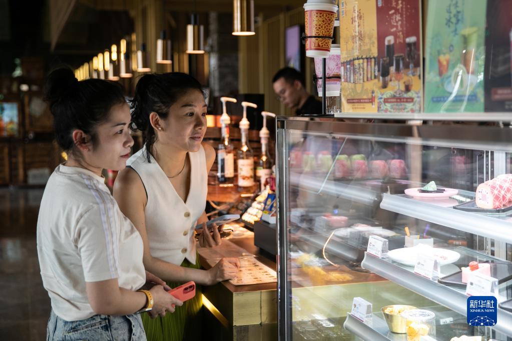 6月10日,在重慶故宮文物南遷紀念館的角樓咖啡店,顧客準備點單。