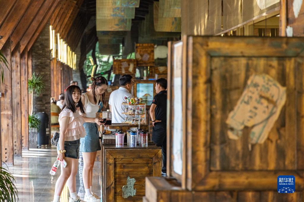 6月10日,在重慶故宮文物南遷紀念館,游客在角樓咖啡店內選購文創產品。