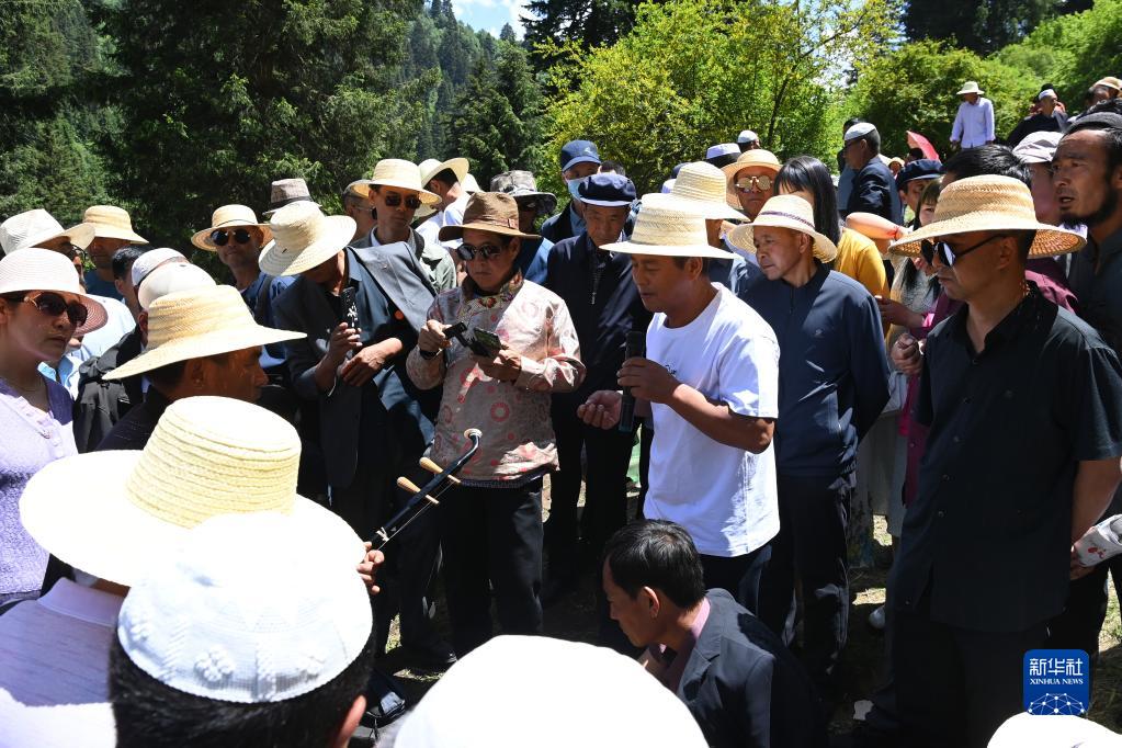 6月13日,在和政縣松鳴巖景區(qū),人們觀看花兒表演。