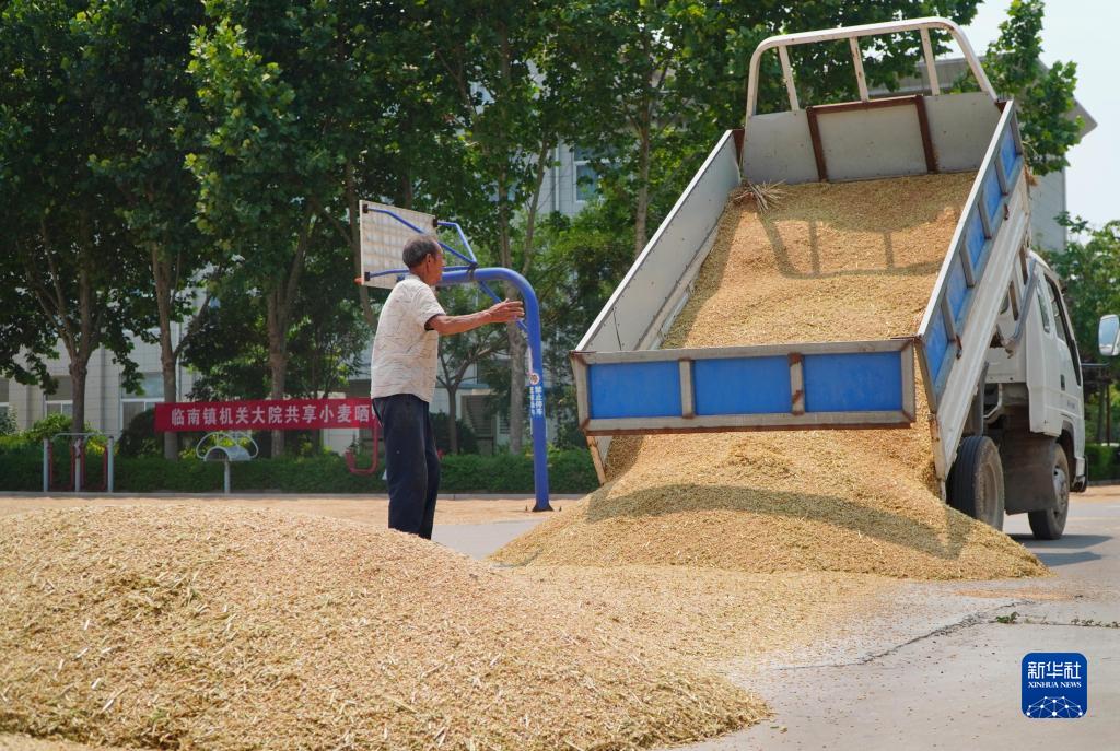 6月13日,農戶把剛收獲的小麥運到臨邑縣臨南鎮政府大院晾曬。