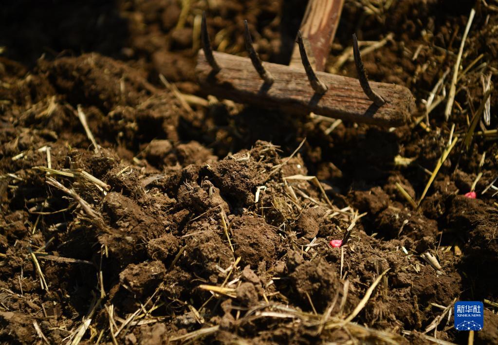 6月13日,在陜西省西安市鄠邑區(qū)五竹街道,農(nóng)戶(hù)在已經(jīng)播種玉米的田地上松土。