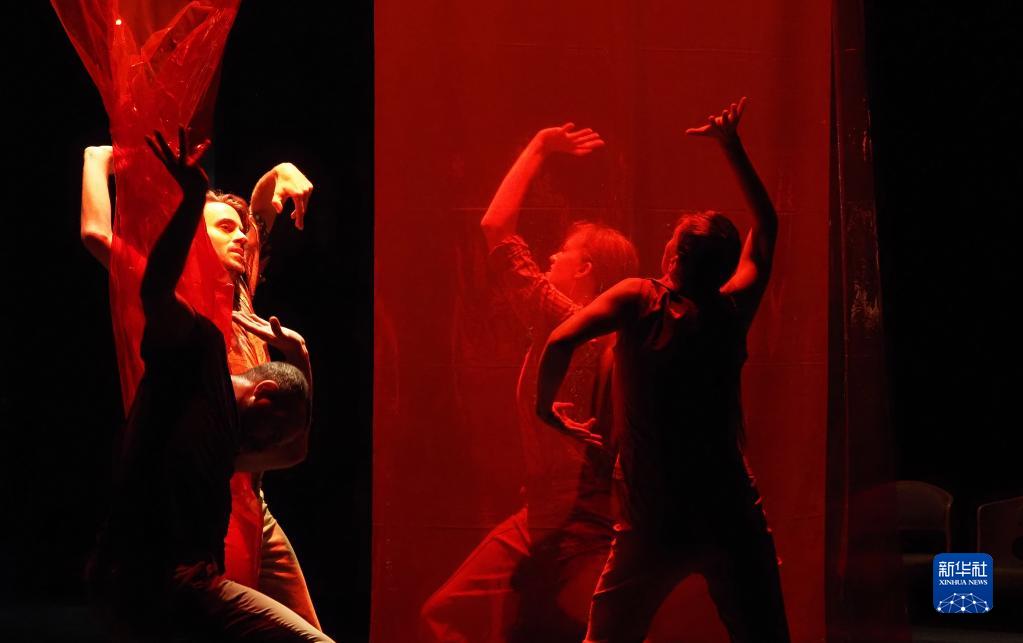 6月13日,瑞士約書亞·蒙登舞蹈團的演員在上海國際舞蹈中心實驗劇場表演《幸福的降落傘》。