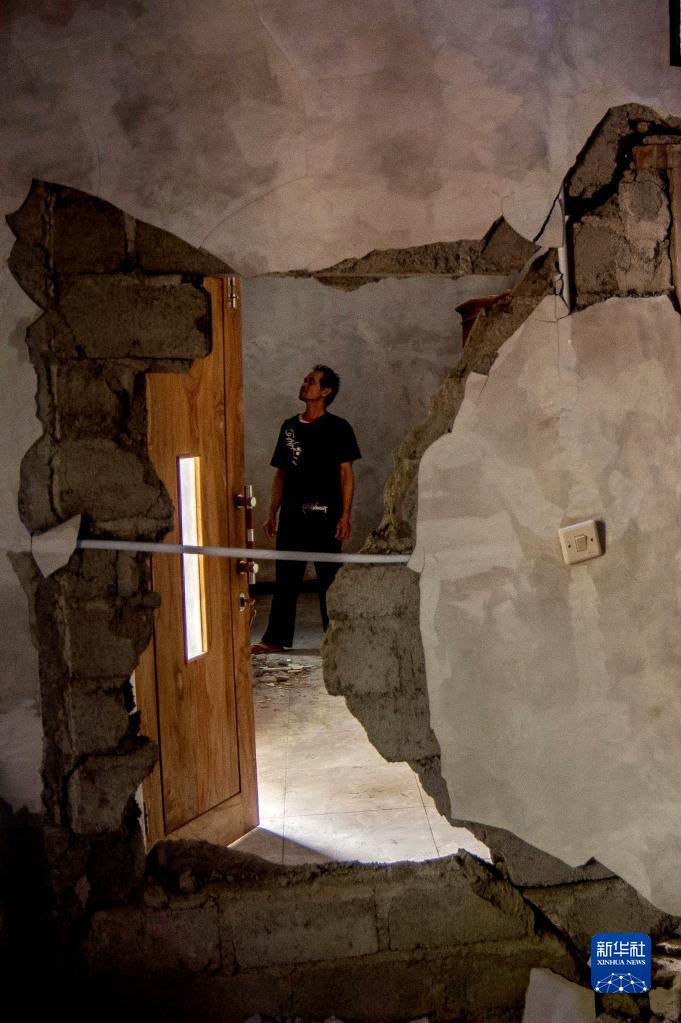 7月1日,在印度尼西亞日惹特區(qū)帕卡雷霍村,一名男子站在被地震破壞的房屋內(nèi)。