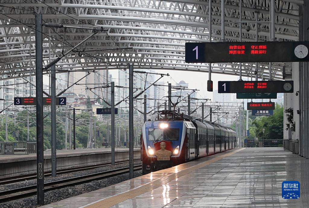 6月30日,上海至嘉興的Y701次“南湖·1921”紅色旅游列車抵達鐵路上海西站。