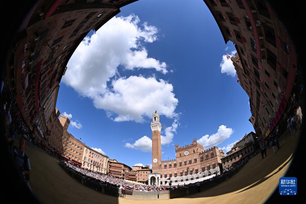 當日,錫耶納賽馬節在意大利托斯卡納大區古城錫耶納市中心的田野廣場舉行,吸引了眾多觀眾前來觀看。錫耶納賽馬節是世界聞名的意大利傳統民間活動,始于1656年,每年7月2日和8月16日舉行兩次。