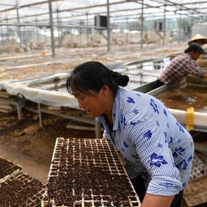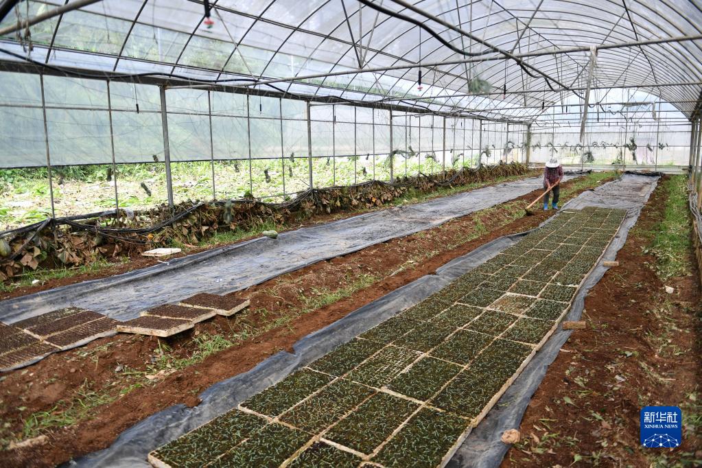 7月3日,在湖南湘西州保靖縣陽朝鄉(xiāng)溪洲村一處農(nóng)業(yè)基地,農(nóng)民在打理蔬菜苗。