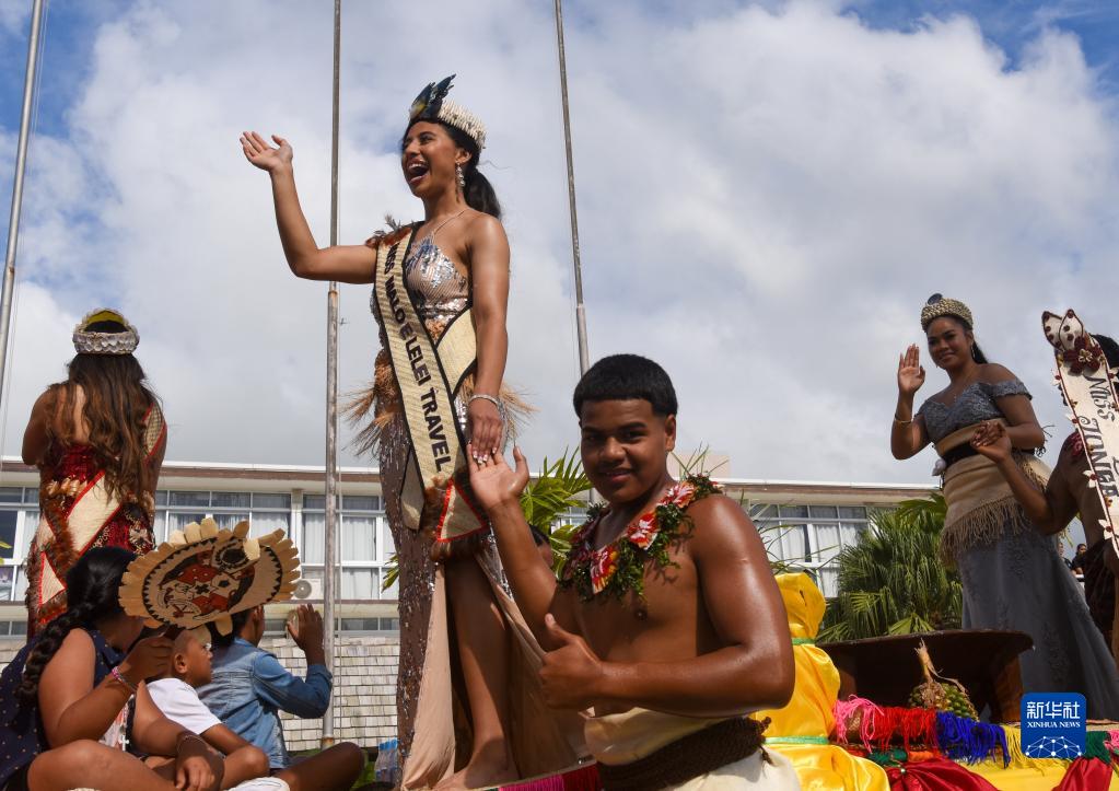 7月4日,人們在湯加首都努庫阿洛法參加花車游行。