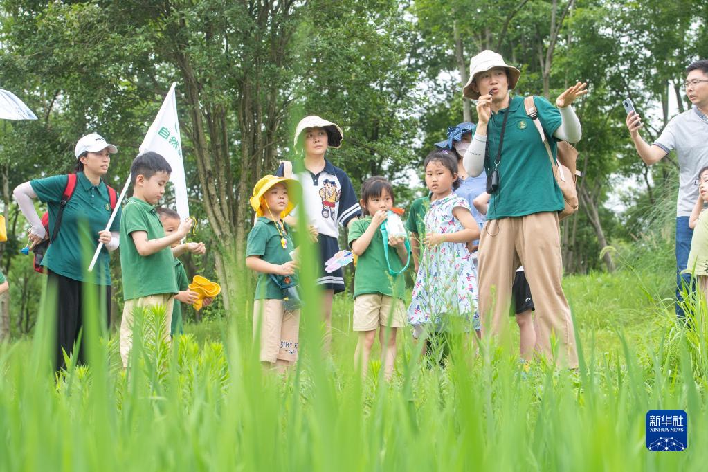 7月3日,研學課老師在廣陽島的“生態研學課程”上向家長和孩子們講述廣陽島的生態修復故事。