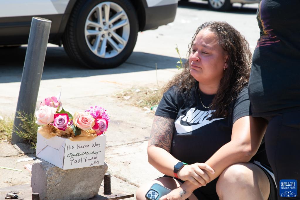 7月4日,一名婦女在美國得克薩斯州沃思堡槍擊事件現場附近哀悼遇難者。